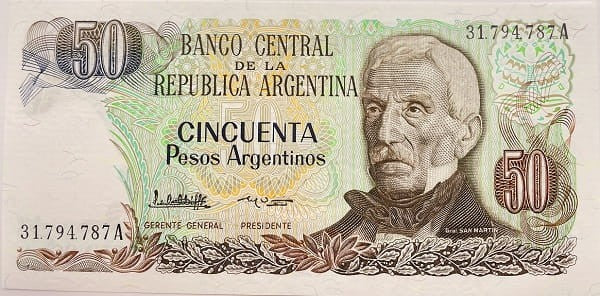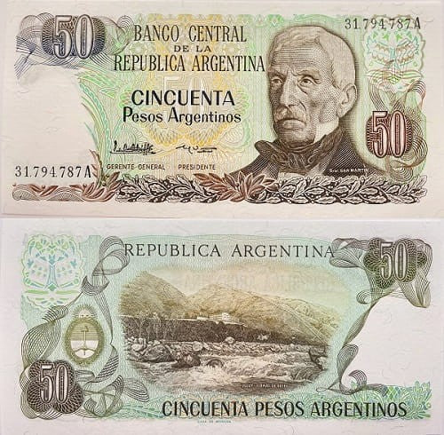50 pesos - banknot 50 pesos Argentyna z kategorii obiegowe banknoty świata kontynent Ameryka Południowa, materiał papier, stan zachowania UNC, stan 1