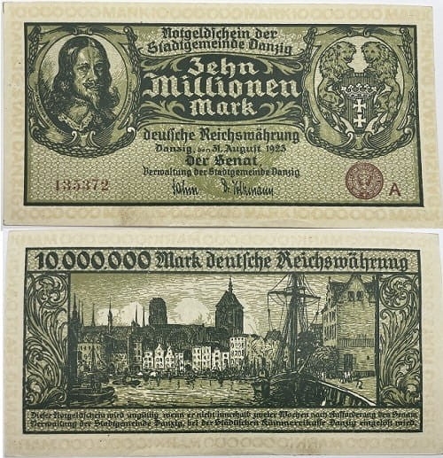 Banknot 10 mln marek 1923 Wolne Miasto Gdańsk