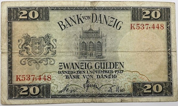 Banknot 20 guldenów 1937 r. Wolne Miasto Gdańsk
