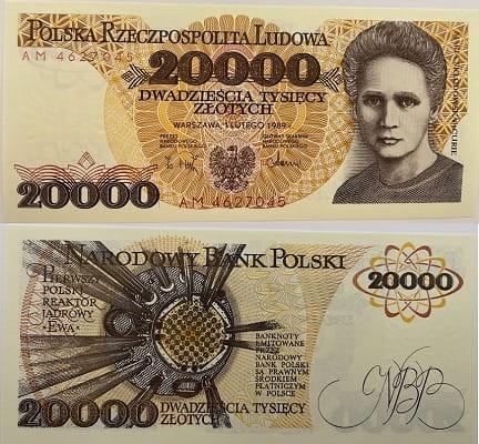 Banknot 20000 zł 1989 Maria Skłodowska-Curie stan 1