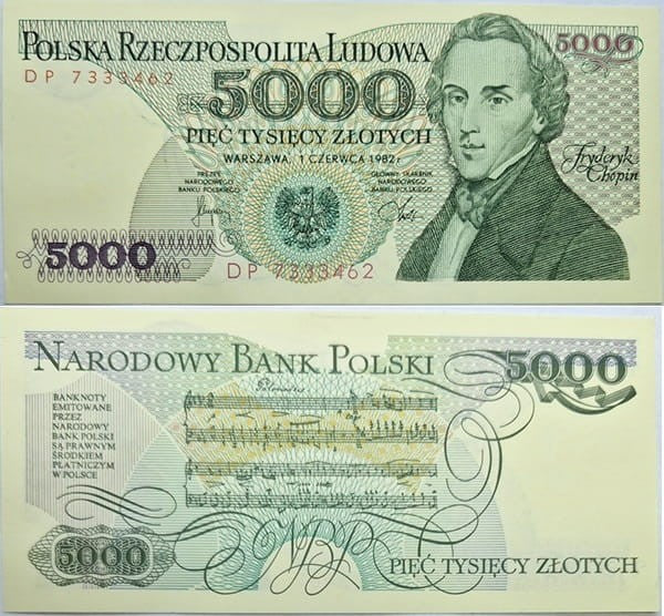Banknot 5000 zł 1982 Fryderyk Chopin
