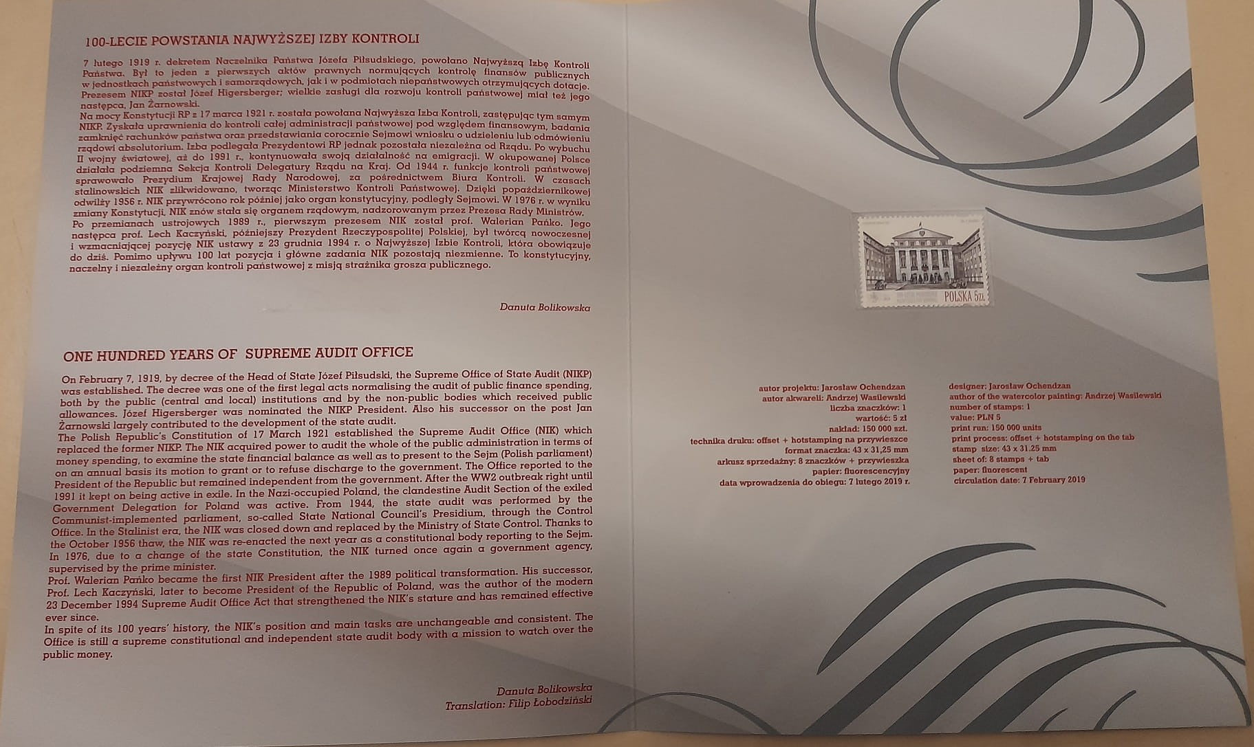Folder 100-lecie Najwyższej Izby Kontroli NIK 2019 r.