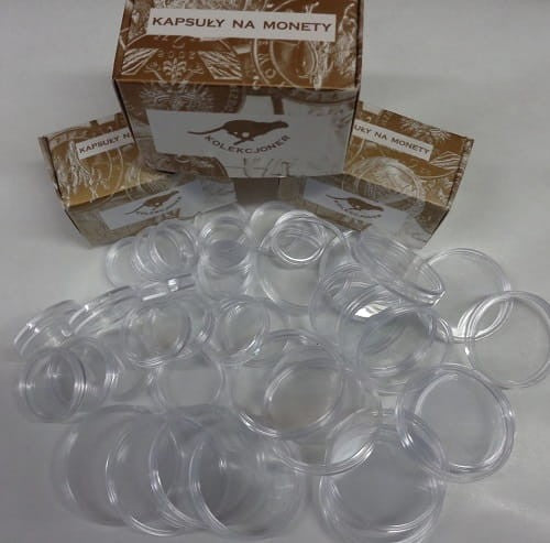 Dostępne są różne rozmiary wewnętrzne kapsli na monety polskiej marki Kolekcjoner: