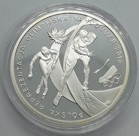 10 złotych Polska Reprezentacja Olimpijska 2010 r. - srebrna moneta kolekcjonerska 10 złotych NBP, producent Mennica Polska S.A., z serii Igrzyska Olimpijskie, stempel lustrzany, stan zachowania L/L, real foto