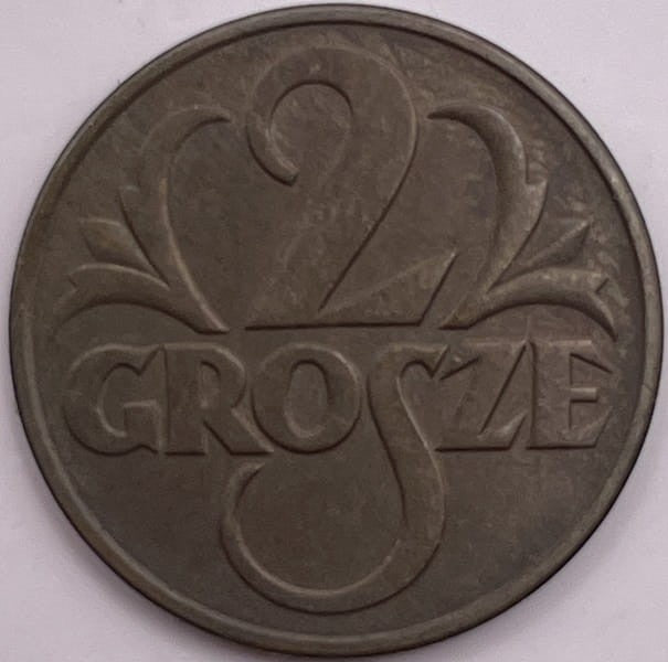 2 grosze 1939 r. - moneta obiegowa z okresu II Rzeczpospolitej Polskiej, metal brąz, emitent Bank Polski, producent Mennica Państwowa, stempel zwykły, stan zachowania +2, real foto