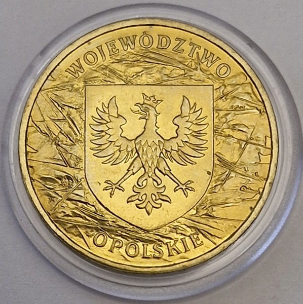 Moneta okolicznościowa Nordic Gold NG emitent NBP, producenta Mennica Polska S.A., seria Herby Województw numer 8 z 16, stempel zwykły, średnica 27 mm, masa monety 8,15 gram, metal projektant rewersu, moneta CuAl5Zn5Sn1, wielkość emisji 900 000 sztuk, rok emisji 2004, projektant rewersu Roussanka Nowakowska, moneta w kapslu ochronnym, stan zachowania -1