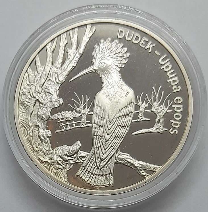Kolejna odsłona jednej z najbardziej pożądanej i poszukiwanej monety przez kolekcjonerów z serii srebrnych monet po denominacji o nominale 20 złotych. Dudek to siódma moneta z serii Zwierzęta świata, na którą składają się 22 monety. W skład serii wchodzi pierwsza moneta 300 000 zł Jaskółka z 1993 roku przed denominacją oraz jedyna moneta koloryzowana 20 złotych Kangur olbrzymi z 2013 roku. Seria kończy się monetą z 2015 roku Pszczoła miodna