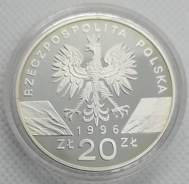 Srebrna moneta kolekcjonerska 20 złotych NBP - Narodowy Bank Polski, producenta Mennica Polska S.A. z serii Zwierzęta Świata, numer 3 z serii 22 monet, moneta w stanie menniczym w kapslu ochronnym.