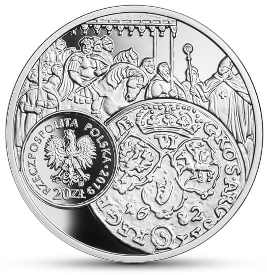 20 złotych Szóstak Jana Sobieskiego 2019 r. - srebrna moneta kolekcjonerska, emitent NBP - Narodowy Bank Polski, producent Mennica Polska S.A., z serii Historia monety Polskiej, stempel lustrzany, moneta w kapslu ochronnym pudełku z certyfikatem, stan zachowania menniczy