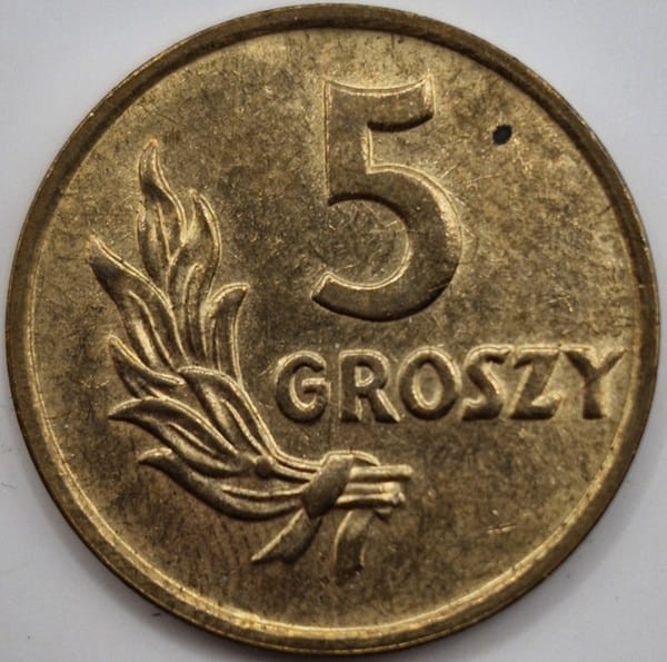 5 groszy 1949 r. b.z. - moneta obiegowa z okresu II Rzeczpospolitej Polskiej, metal brąz, emitent Bank Polski, stempel zwykły, stan zachowania +2/-1